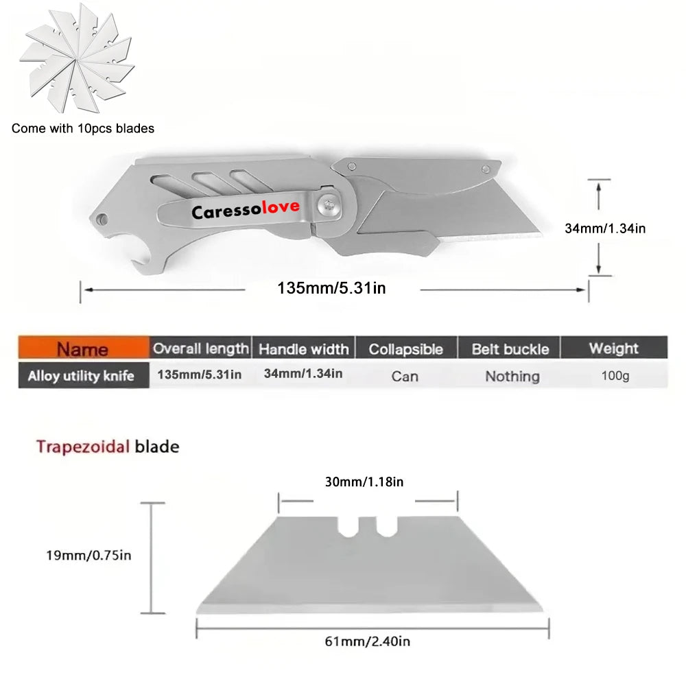 Caressolove 420 Steel Folding Utility Knife Portable Foldable Paper Box Cutter EDC Tools Pocket Knife Heavy Duty Work Knife